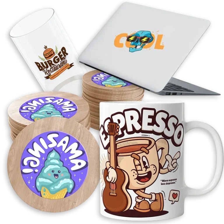 Personalización permanente de alta gama sobre acero inoxidable, madera, cuero y acrílico. Ideal para termos, artículos de oficina y placas de identificación con un acabado elegante que nunca se borra.